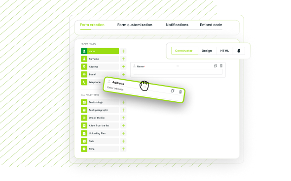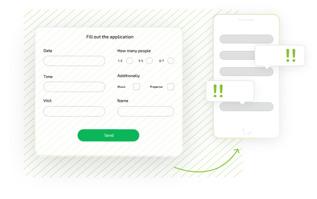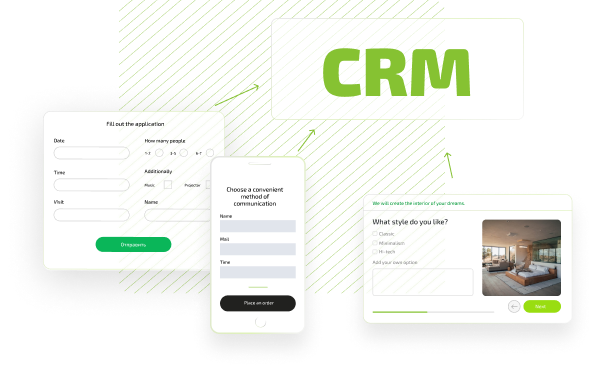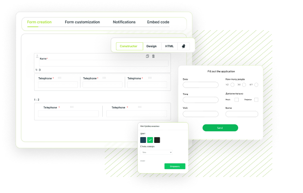 QForm integrates with key CRM, mailing services, messengers. This simplifies working with transactions, allows you to keep online records, send emails and SMS to the collected database