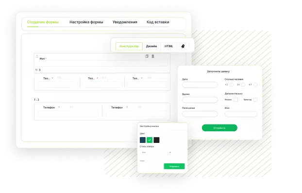 • Drag-and-drop constructor: create forms by dragging elements, without programming skills.