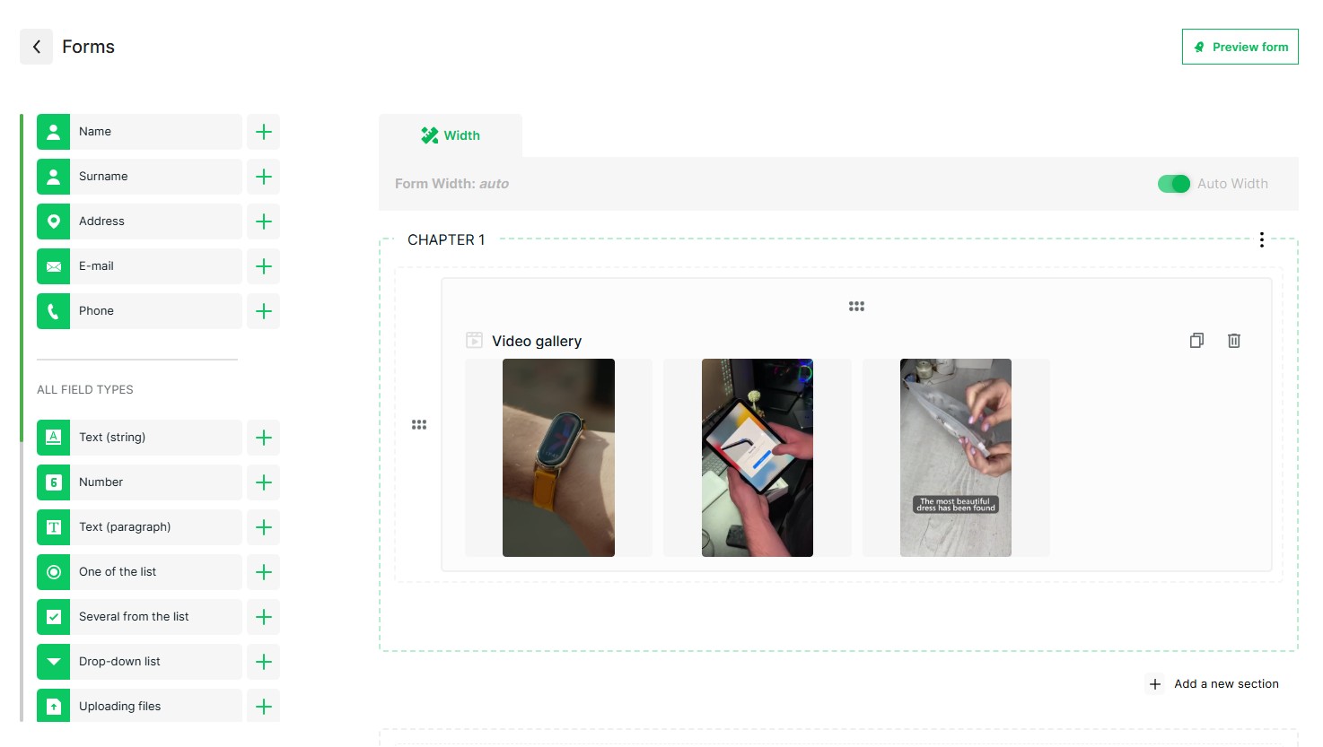 Our form builder allows you to add videos to your form to increase user engagement. You can clearly show how your product works, what benefits it brings, or introduce the team behind the project.