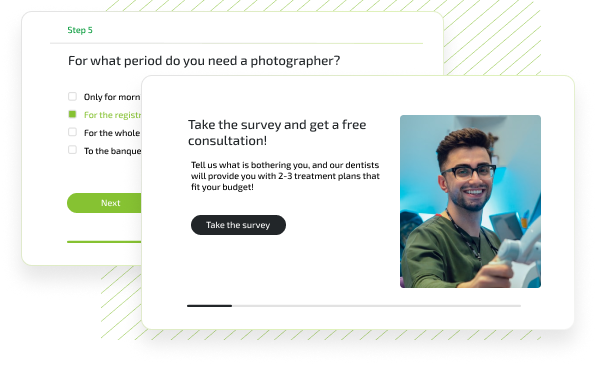 With the Qform constructor you can create any number of quizzes for your landing page or website. The more engaged visitors, the higher the conversion