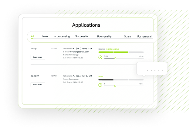 Mini-CRM stores and allows you to process requests from your users. You can track their status and immediately start working: call or write to the client