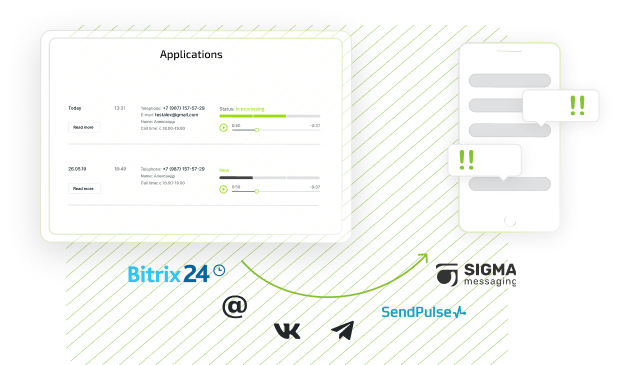Configure sending data to the Sendpulse and SigmaSMS mailing systems, by mail, CRM Bitrix24, VKontakte and Telegram accounts