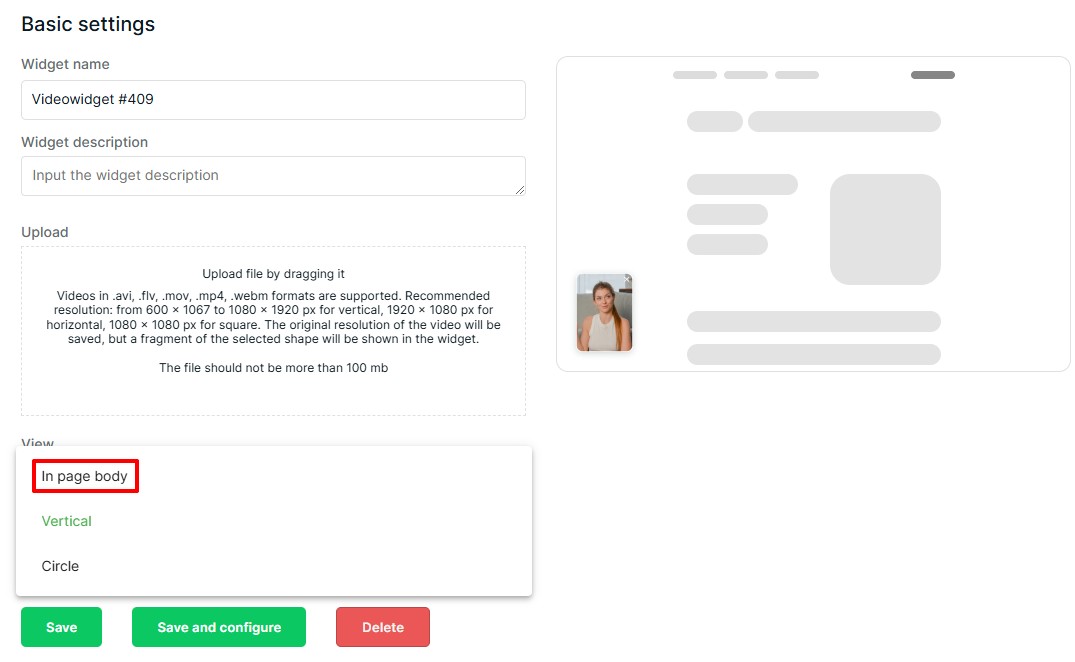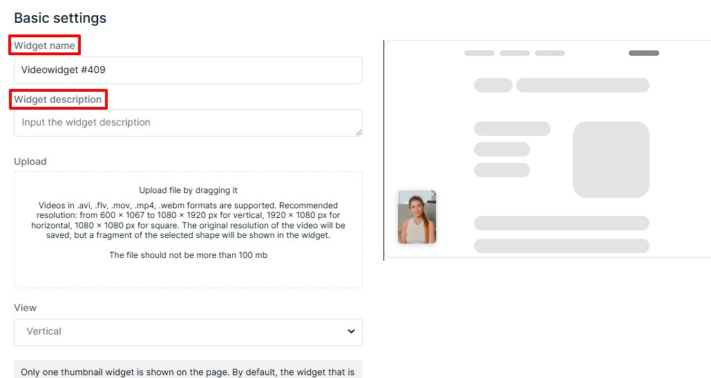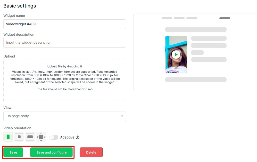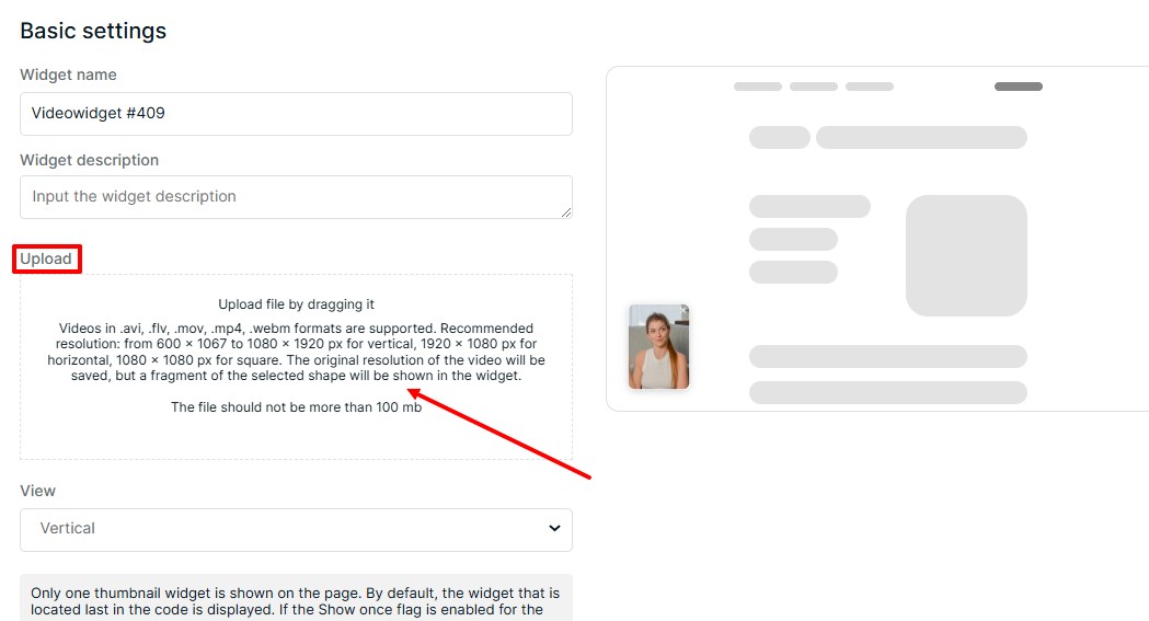 Upload a video from your device. Make sure it supports the required format and does not exceed the specified dimensions (depending on the tariff).